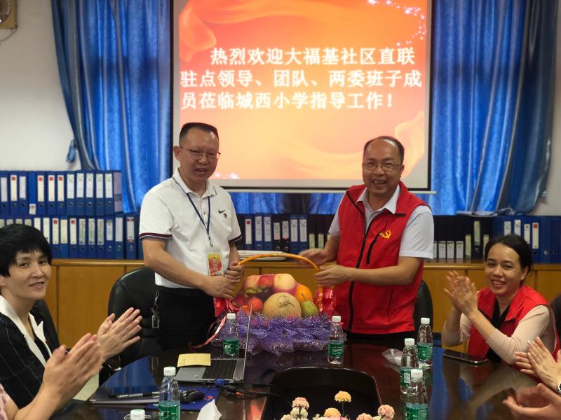 9月8日,在教師節來臨之際,容桂街道黨工委馮家擎委員、街道財政辦公室張智主任、街道城建和水利辦公室陳佩琛副主任、大福基社區梁志勇書記、劉志華副書記、周淑芳委員、龔洪添委員等一行人,代表容桂街道、大福基社區居委會蒞臨城西小學,對城西小學教師進行節日慰問,向城西小學教師及教育工作者致以節日的最真摯的問候和祝愿。