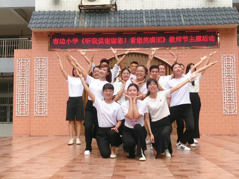 活動開始,由容邊小學彭海云校長致辭。她肯定了容邊小學全體教職工的辛勤付出,并深情寄語:即使工作再繁忙,也要注意身體健康;即使工作再繁忙,也不要忘記微笑。接著,是由容邊小學402中隊學生代表鄧超華講話,他給予老師們深深的祝福:老師,謝謝您,祝您教師節快樂!