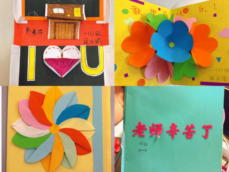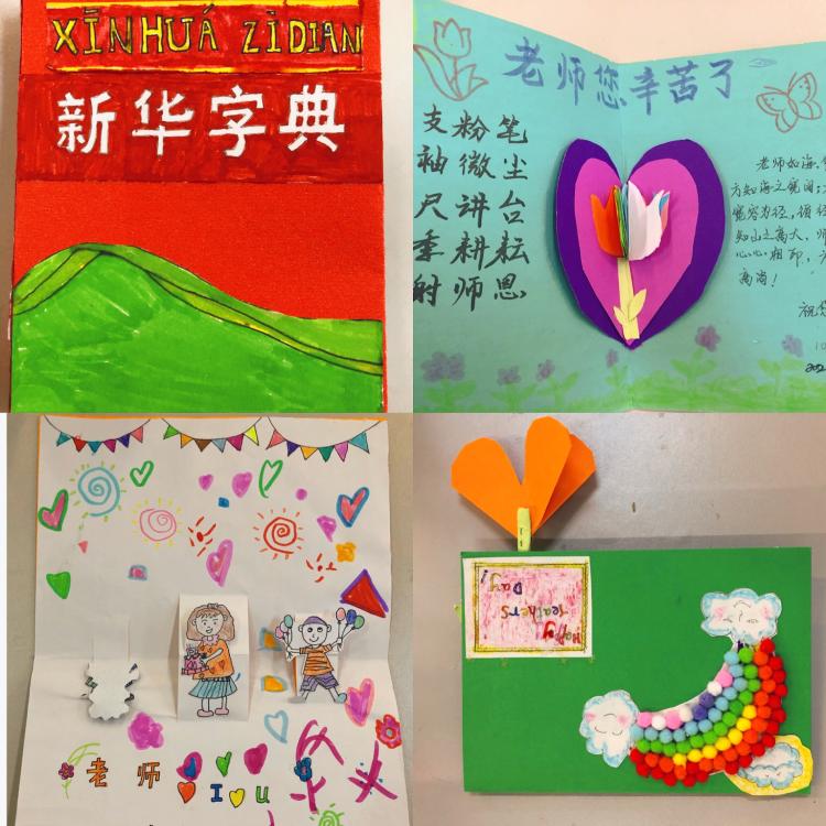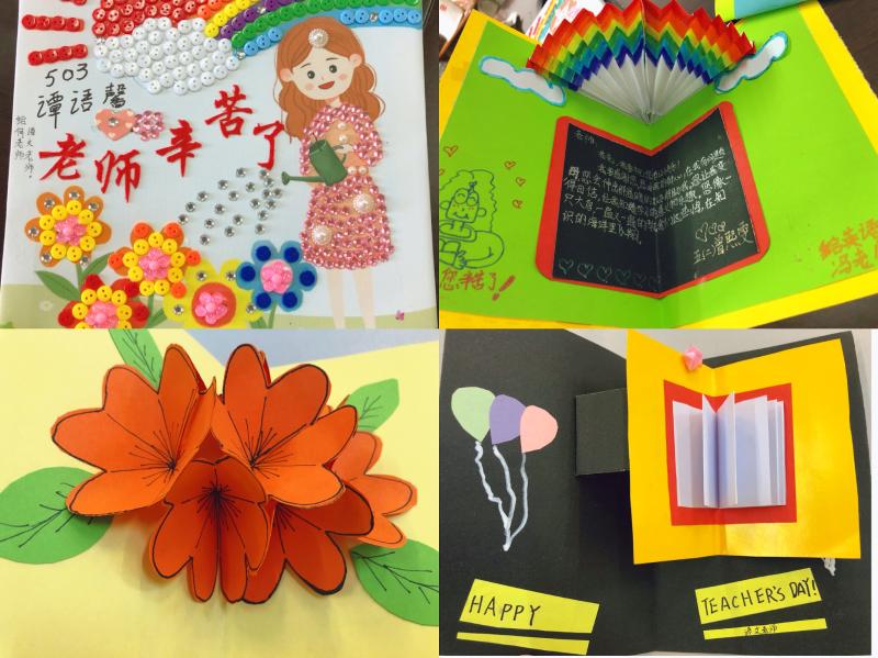 “張張賀卡傳真情,句句祝福暖師心”,活動的最后,各年級的優秀賀卡制作者到舞臺上展示他們的精美賀卡。他們利用周末親手制作,花式多樣,極具創造力,小小的賀卡附上了他們濃濃的謝意,并在這個特殊的節日送給了自己喜歡的老師們。
