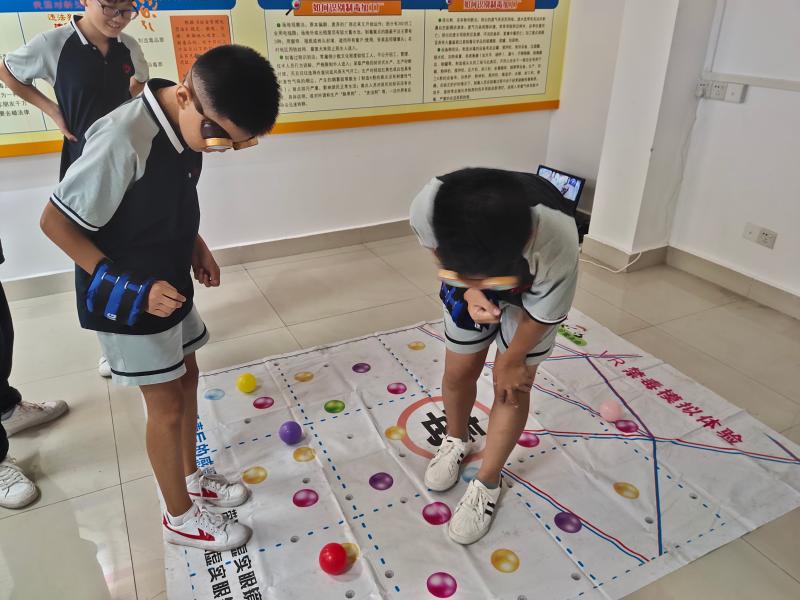 VR體驗區和游戲互動區內,同學們在社工們的幫助下戴上VR眼鏡、負重袋等設備,在模擬情境中體驗吸食毒品帶來的不良反應。參與者時而害怕,時而慌亂,聲聲驚嘆中對吸食毒品有了一個較為清醒的認識。