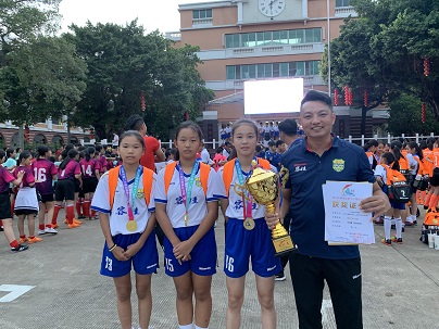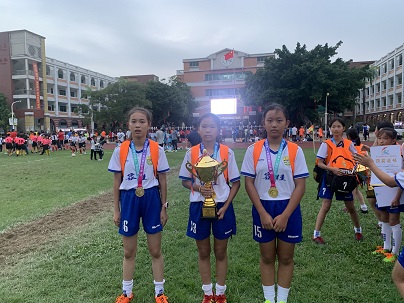 其中我校三名足球隊員譚倩怡、唐詩羽、楊欣怡憑借自身強硬的本領被抽調參加容桂代表隊。譚倩怡等三位同學既是學校足球隊隊員,同時也是我校田徑隊的優秀成員。由于今年順德區足球比賽和容桂街道田徑比賽時間較接近。因此在這段時間里他們既要代表容桂參加區的足球訓練又要參加學校的田徑訓練,但是三位優秀的運動員從未喊過一聲苦,堅持每天訓練,發揚拼搏精神,追逐自己的夢想。