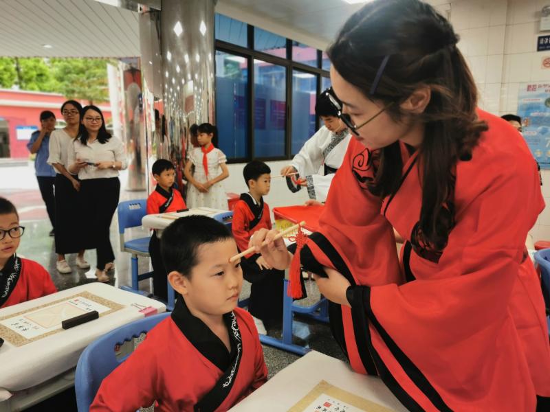許勇輝校長放下鼓椎,目光深遠地望著眼前這群童蒙稚子,眼里滿是期許,心里滿是豪情。是的,為了幫助新生上好人生第一課,寫好人生第一筆,學校特意在孔子誕辰日開展活動。