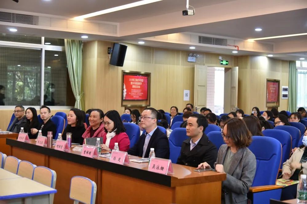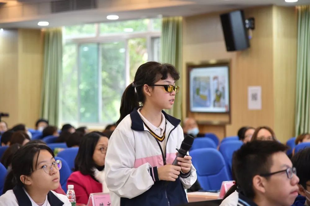 我校石委華科長及廣東實驗中學梁幸老師分別分享兩校在整本書閱讀教學中所獲經驗。石科長表示,順德一中外國語學校通過語篇教學、時文閱讀、經典詩歌雙語誦讀及整本書閱讀等方式,致力于打造有高度的課堂精讀、有廣度的課外閱讀和有深度的閱讀點評。而整本書閱讀中,讀前共讀、讀中細讀和讀后研讀,進一步提升學生的閱讀興趣。