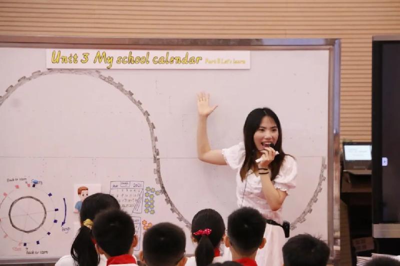 來自容桂高黎小學的林慧玉老師從語篇、語用、語境三個角度出發,通過學生日常生活中熟悉的是事物――“校歷”的形式來展示各個月份的活動與節日安排。林老師帶領學生走進中西方傳統的節日,指導學生通過完成任務型活動,進行對話練習,讓學生們在理解的基礎上,嘗試著歸納,總結規律,與同伴進行交流與表達。