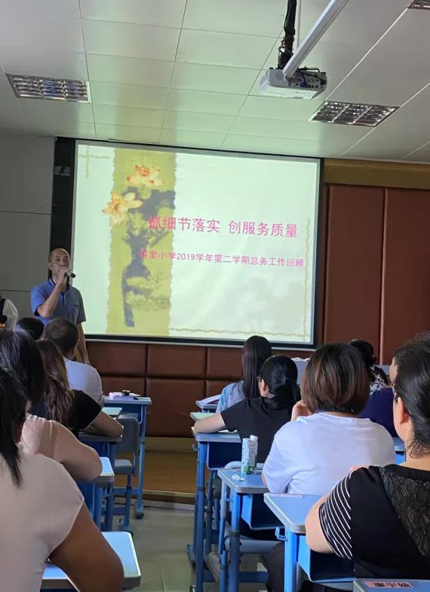 “起來,不愿做奴隸的人們!”隨著一首國歌拉開了2020年學期工作總結大會序幕。 首先由教學處周曉彤主任用微視頻方式對語數英三科的教育教學工作進行總結,在疫情期間老師們與疫同行,伴生共線,巧妙地做好了開學前的銜接的工作,讓學生很快融入學習中去。周主任以“積跬步至千里”要我們繼續做好教研名師體現校本特色和打造個性文化為教育方向。 其次總務處胡銳添主任給后勤的工作人員在疫情期的防疫防護工作進行高度肯定,在復學后他們仍然細致地做好學生身體健康的跟蹤讓學生在安全、干凈的環境中生活和學習。 然后德育處賴雪玲主任以“心系學校,心系國家”主題的班會形式對學校宣傳組、心理健康疏導團隊成員及學校家長義工隊工作進行表揚,學校宣傳組幾乎每天加班加點為學校公眾號高效地發表學校的教學動態,其中有145篇文章成功推送到區教育信息網,為學校打造了有力的名片。心理疏導組為孩子復學情緒日夜兼程,用專業和真情拯救了無數受害的家庭。 接著謝能桂副校長廣納民意代表工會提案進行詳細說明和分析,為校職工的幸福指數和待遇又提高了一個檔次。 最后,陳醒嫻正校長指出對末來工作的展望與方向,末來我們要抱團前行,向多元化發展辦有品質的教育,心有所信,方能行遠。大會上給予各行政班子頒發感恩卡,感恩一路上有你,感恩砥礪前行的自己。