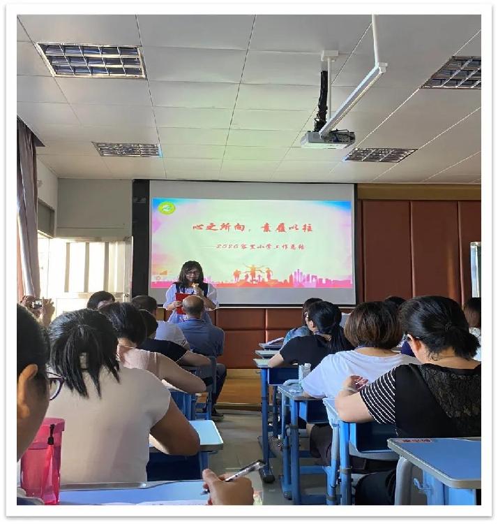 首先由教學處周曉彤主任用微視頻方式對語數英三科的教育教學工作進行總結,在疫情期間老師們與疫同行,伴生共線,巧妙地做好了開學前的銜接的工作,讓學生很快融入學習中去。周主任以“積跬步至千里”要我們繼續做好教研名師體現校本特色和打造個性文化為教育方向。