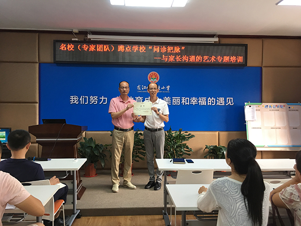 夏日炎炎,酷暑難當,但葉霖佳小學的老師們學習的熱情絲毫不受影響。2020年7月22日下午3:30順德演講與口才協會鐘家勤副會長結合在我校蹲點“問診把脈”發現的問題,百忙中抽空前來為全校老師作“與家長溝通的藝術專題”的培訓。