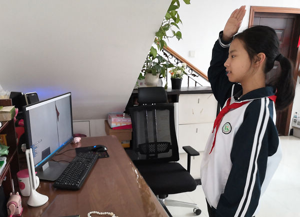 “升國旗、奏唱國歌,敬禮”,鮮艷的五星紅旗冉冉升起,奮發的少先隊員們敬著標準的隊禮,鏗鏘的國歌奏響在全校師生家里,滾燙的愛國之情在每一位心中升騰.......這一刻,我們雖身處不同地方,但我們都懷揣著一顆熾熱的赤子之心,共同祈愿能早日回歸等待了我們許久的校園!