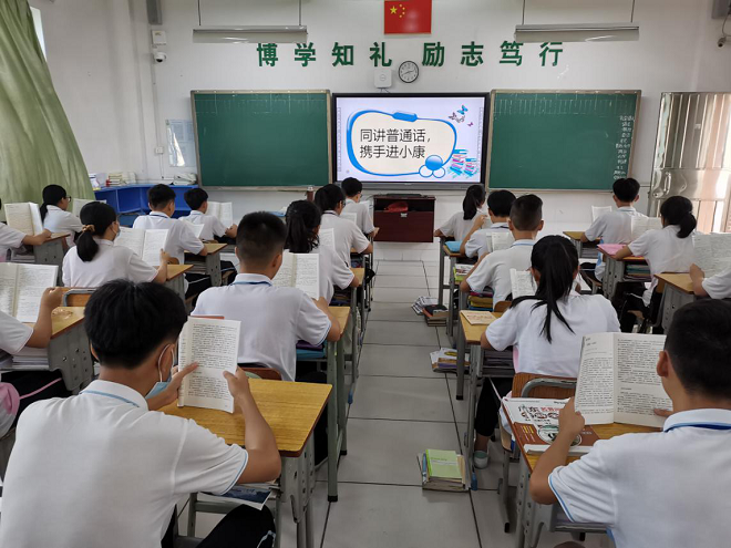 2020年9月14日,我校九年級師生開展“同講普通話,攜手進小康”經典誦讀活動。