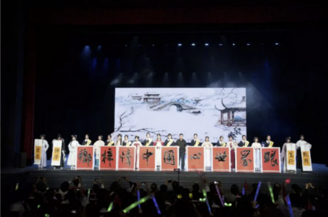 部分優秀畢業生回校與在校學生合奏古箏作品《雪落下的聲音》