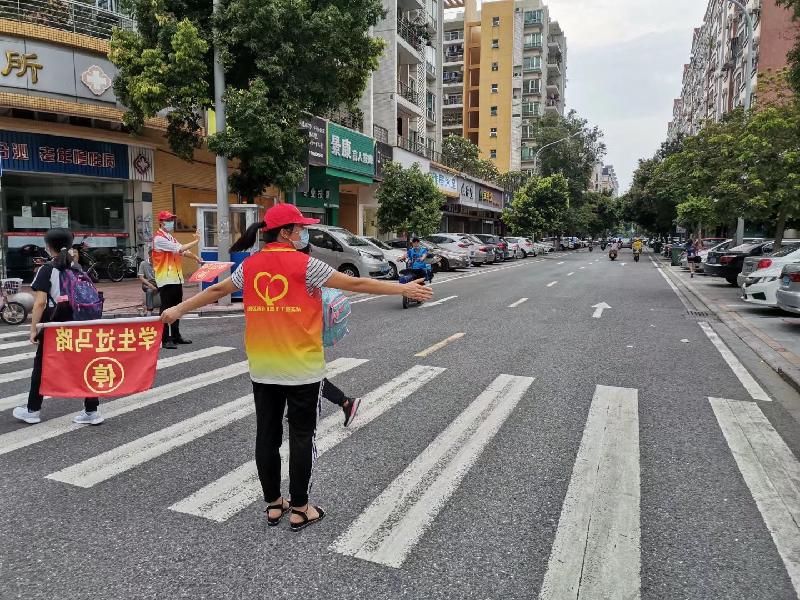 時值2017年9月,楊潤懿老師組織成立了學(xué)校的服務(wù)隊,他是我的班主任和語文老師,在他的“鼓動”下,媽媽就加入了服務(wù)隊。現(xiàn)在我已經(jīng)讀初中了,當(dāng)媽媽知道容桂小學(xué)成立志愿者服務(wù)隊時,又成為了服務(wù)隊的一員。