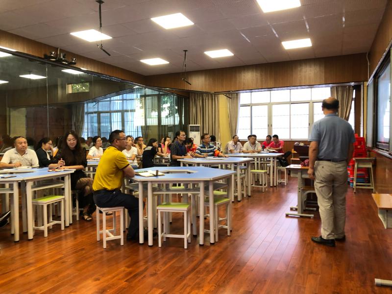 為提升科組建設,促進學校科研工作發展,9月24日,勒流新球中學教研室特意邀請了正高級教師、順德區教育發展中心教科室鄧國強老師來校召開講座。講座分兩個部分進行,一是面向所有學科的科長,開展了以“如何當好學科組長”為主題的講座,二是給所有的數學老師講了“如何研究教育教學真問題”。參與活動的人員有街道教研室汪志偉老師、新球中學何興球校長、郭懷才副校長、古林海主任以及相關老師。