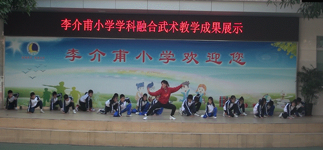 學科融合武術教學是基于李介甫小學“激揚教育”的教育理念、探索學校武術文化建設在學生武術教育教學中的新路子,李介甫小學構建了多層次的武術教學體系,將武術育人目標融入到學校育人目標體系中,通過開展豐富的校園武術活動,實踐并創新“以武育人、以武養德”,整合學校武術教育資源,探索學校武術教育融入學校德育的途徑和方法。以武術為紐帶,拓展了綜合學科的整合,提高了武術育人的空間與品位。
