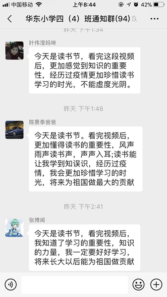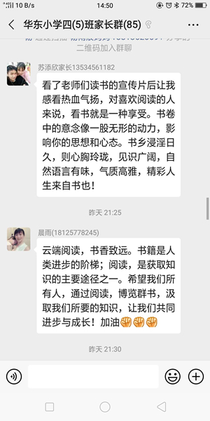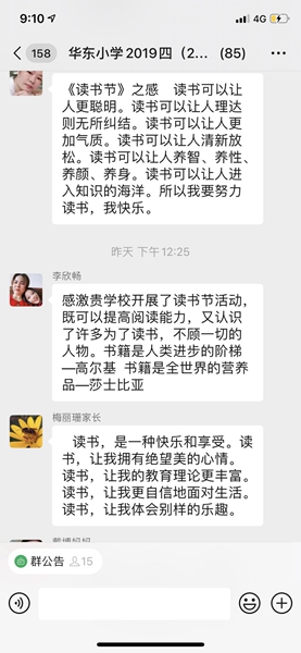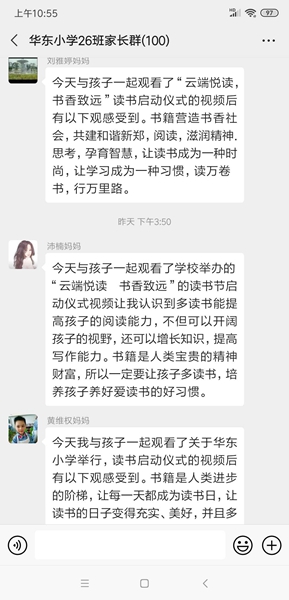 各班家長(zhǎng)們也在線上進(jìn)行讀書節(jié)互動(dòng)