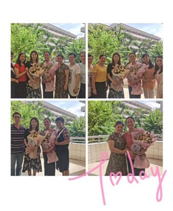 劉曲浩然同學(xué)與校領(lǐng)導(dǎo)和老師們合影
