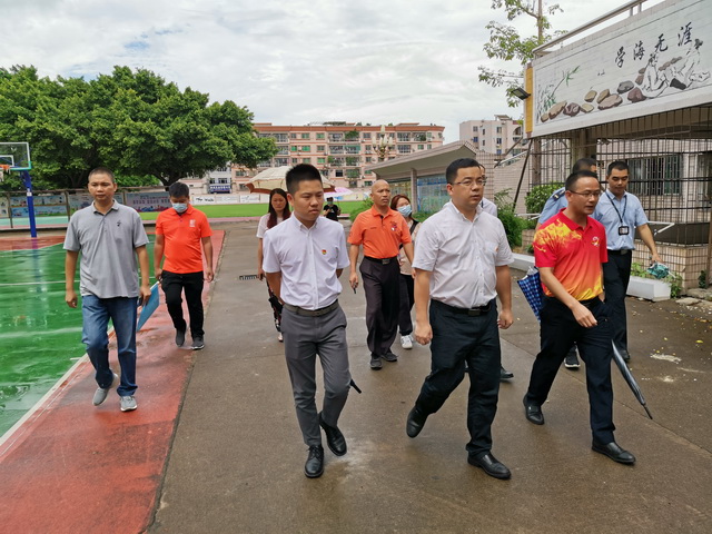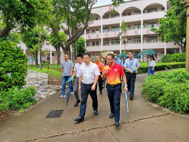 8月13日下午,勒流街道黨工委書記王光、宣傳文體局副局長郭永添同志以及相關單位領導,在教育局常務副局長王家倫同志的陪同下蒞臨我校對創文工作進行視察。