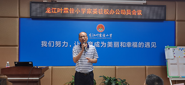接著,由學校德育處主任廖美素向全體家委對“家校共建,協同管理”家委駐校辦公的實施方案進行解讀,讓家長參與學校的監督和管理工作有效推進開放辦學、多元管理的家校共育工作。
