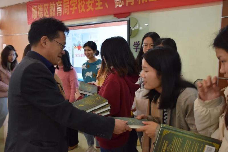 歡送會接近尾聲,趙校長給獲得“優秀實習生”的老師頒發證書并留下合影。同時給二十五位實習老師都贈送了一本書《給老師們的建議》,趙校稱,“未來教育家”這五個字概括了我對你們的厚望,也希望你們在日后的工作中可以能夠逆流直上,活出燦爛的人生。