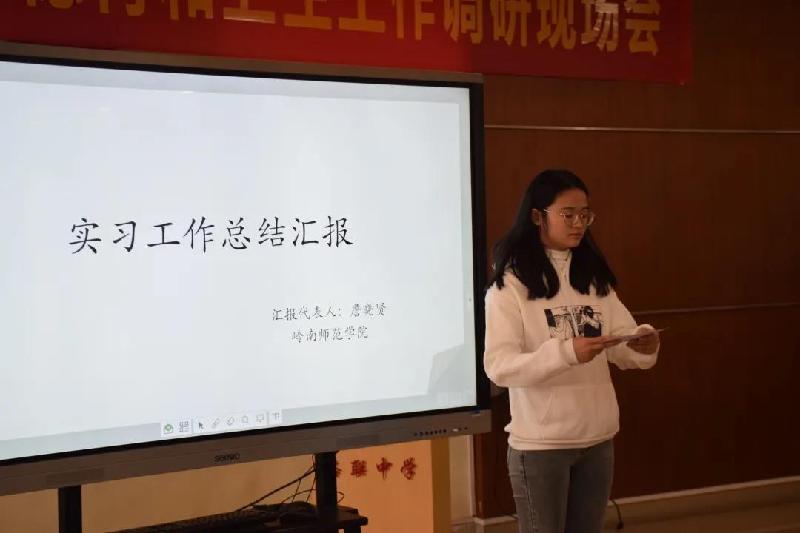 兩名實習老師分別進行了發言,首先感謝了杏聯中學各位領導和老師對自己的悉心培養和實習工作的大力支持,并從日常生活、教學教研活動、班主任工作等方面對實習工作進行了匯報,分享了自己在實習崗位上的收獲與感悟。