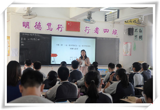 大課間過后,新教師分批進入初中課堂,分別觀摩彭珊老師的數(shù)學課和練兆霖老師的英語課。真實的課堂情境幫助新教師進一步了解初中學情。