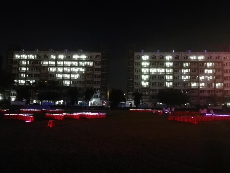 感謝為本次活動默默耕耘的高一高二的學生會骨干,使得燈光秀活動能夠順利開展完美呈現(xiàn),整個活動從策劃到成功上演的過程消耗了他們五個月的時間,還有大量的腦力和休息時間。為保證宿舍樓層的燈光的對接,骨干們考慮了很多突發(fā)的事件,到安排人員分工,雖然過程很苦很累但到了活動當天,學生會文體部同學和生活部一起點亮對高三的祝福與期望。為了避免失誤,骨干們跑遍整棟宿舍樓層,在一個寂靜高溫的夜晚,旋轉(zhuǎn)著的樓梯,伴隨著倉促的呼吸聲,還有從眉宇間流淌的汗水,只為呈現(xiàn)一場視覺盛宴。