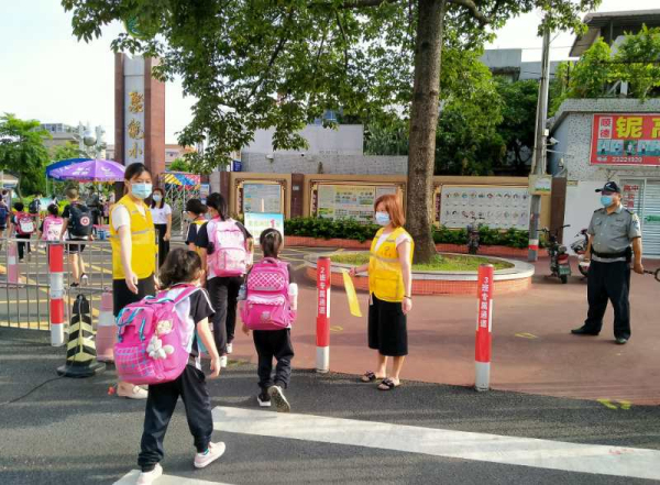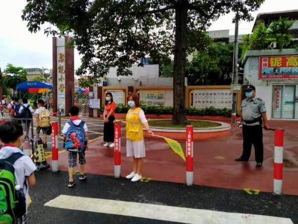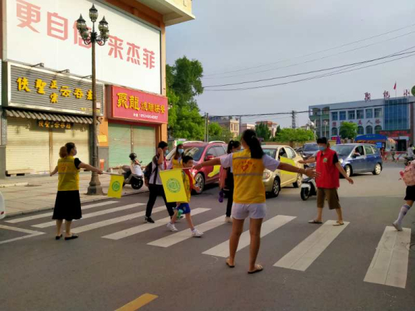 有一種守護叫風雨無阻,有一種大愛叫默默堅守。自家長志愿者服務隊成立以來,家長志愿者們每日出現在學校門口,身穿紅色馬甲,手拿黃色旗幟,形成了一道靚麗的風景。家長志愿者們在校園門口、交通路口等要處疏導交通,維護交通秩序,為孩子們開辟“綠色通行道”,協助值日老師、民警同志減輕道路通行壓力,保護孩子安全上學。