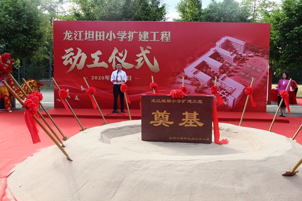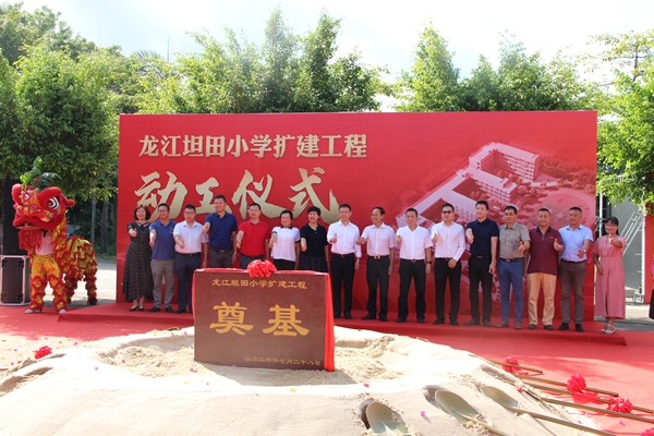 百年大計,教育為先。2020年7月28日上午,龍江坦田小學擴建工程項目動工儀式隆重舉行,龍江鎮黨委書記何春云,龍江鎮人大主席林定基,龍江鎮黨委副書記賴朝輝,龍江鎮黨委委員、鎮教育局局長歐陽伯洪,龍江鎮副鎮長盧國漢,龍江鎮副鎮長劉振峰,原順德區人大常委會副主任張教邦,龍江總商會會長、廣東南興天虹果仁制品有限公司董事長鄧惠娟,中國聯塑集團控股有限公司副總裁宋科明,志達集團創始人、志達教育慈善基金主任韓麗容,順德區政協委員、米蘭匯家居展貿中心董事長廖錦添,廣東鴻基家具實業有限公司副總經理陳蓮芳,佛山市人大代表、佛山市順德區建億建筑工程有限公司董事長鄧國福,佛山市盈悅環保工程有限公司總顧問鄧健光,東涌居委會書記、主任劉海祥,坦西村委會書記、主任張展熾以及龍江鎮相關辦局負責人、東涌、坦西兩委成員、各級人大代表、政協委員、社會賢達參與了這次動工儀式。