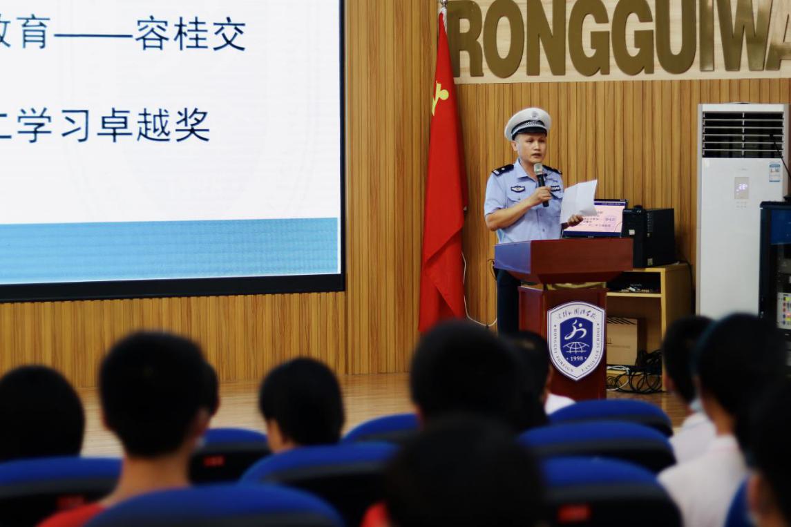 暑假來臨,安全教育不容忽視。容桂交警中隊梁警官為同學們進行暑期交通安全教育指導,他強調了四項準則:“帶”――戴好安全帽,系好安全帶。“守”――遵守交通規則。“勸”――勸告親人切勿酒后駕駛。“抬”――不做低頭一族。期望同學們自覺遵守交通規則,樹立安全意識,真正做到“快樂暑假,安全同行。”