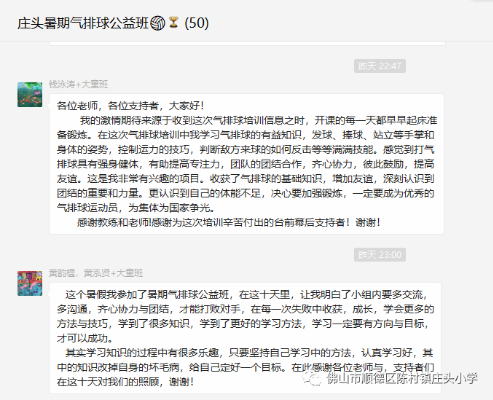 本次氣排球公益培訓班得到了村委會的高度贊揚,同時也獲得了家長以及村民們的一致認可。這也充分展示了我校教師無私奉獻的精神與高質量的體育教學。通過本次培訓,不但豐富了學生的假期生活,而且也進一步推廣和宣傳了氣排球運動,讓我校師生、家長對氣排球都有了更深入的認識。希望今后,有更多的學生與家長參與到我們的氣排球運動中,我們有你一起,更精彩。