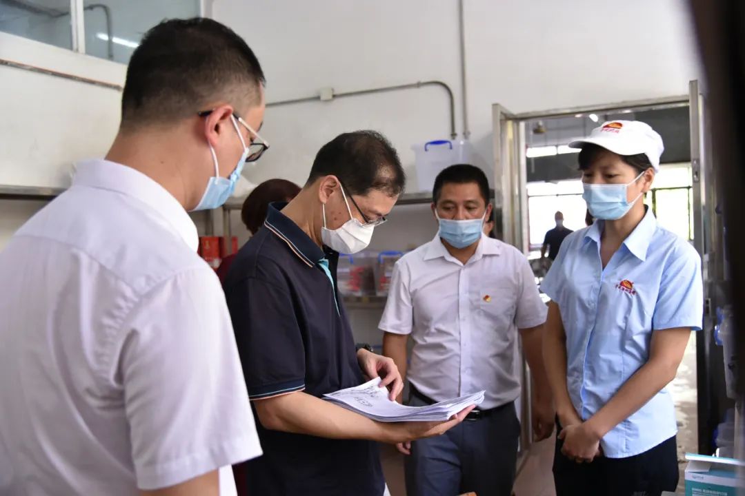 陳宇瑩書記一行先后對我校進校測溫點、防控物資儲備室、課室、校醫室、飯堂、宿舍等學習、生活場所進行了重點檢查,深入了解我校防疫期內學生生病情況跟蹤流程、教室配備的防疫物資情況、宿舍樓裝修進度等,并認真聽取了曾祥明執行校長關于我校秋季開學準備工作及常態化防控工作開展的匯報。
