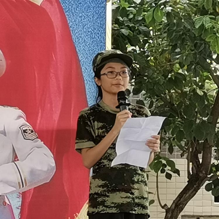 杏聯中學初一(1)班李錦欣同學代表全體新生表達了在社會綜合實踐活動期間服從命令、聽從指揮、吃苦耐勞、挑戰自我的堅定決心。
