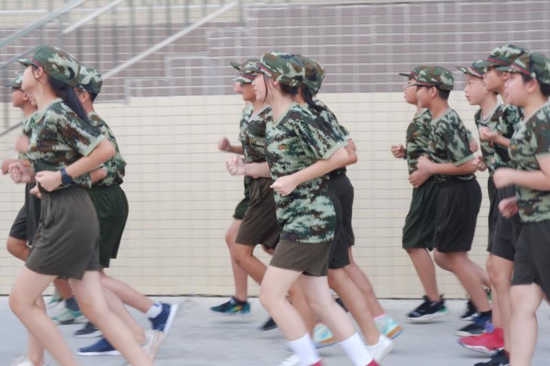 開營結束后,杏聯中學全體參加實踐活動的新生迎著9月的驕陽,立即投入到了緊張的訓練中。酷日下,一張張稚嫩的臉龐上洋溢著朝氣,明亮的眼神里流露出堅毅。
