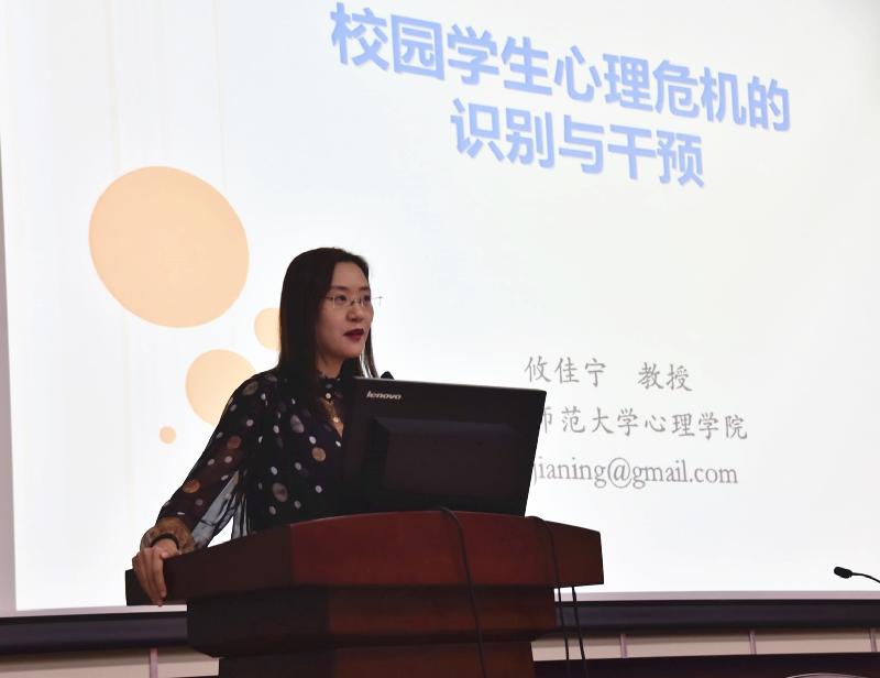 隨后,攸教授從“如何識別”和“如何應對”兩方面著手,澄清了外界對自殺的謬誤,細致地講述預防自殺事件的具體做法。其中,攸教授特別指出自殺是學生求救的重要訊號,教師應認真對待所有的自殺訊息,及早識別自殺的征兆;班主任和科任老師在識別自殺征兆環節中有著明顯的優勢,教師應與家長成為同盟軍,發揮各班心理委員的作用。