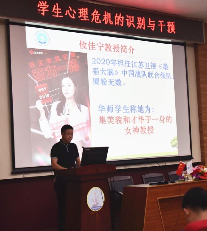 攸教授以《最強大腦》節目為切入點,拉近與教師們的距離,并結合新冠疫情肆虐與當今國際形勢提出了“極限施壓”的主題,激勵老師們:“我們每個人都有戰勝壓力的能力”,“自殺是可以預防的”。攸教授緊密聯系社會時事與教育實際給出“自殺可以預防”的3個理由: