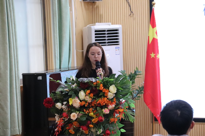 儀式的第三個議程,由工作室成員代表林子楚老師作表態(tài)發(fā)言。發(fā)言中,她首先感謝學校領(lǐng)導、科組老師們的支持、幫助與關(guān)愛,讓年輕教師能勇往直前、無懼風浪;其次,她希望年輕教師能珍惜和把握寶貴機遇,對自己嚴要求、多研學、實操練,向名師靠近、取經(jīng);最后,她有信心各工作室成員能在名師的指導下努力發(fā)展自己,形成合力,為倫小的教育教學水平提升新臺階而貢獻自己的光和熱。