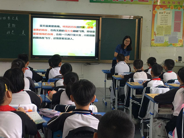 黃娟老師執教的《四季之美》一課,以古詩導入課文,通過朗讀去引導學生感受四季之美,讓學生在讀中感悟,讀中探究。在拓展練習中,黃老師循循善誘,引導學生抓住文中的表達方法,采用動靜結合的寫景方法學生展開想象,仿句練說,提高了學生語言表達和想象能力。