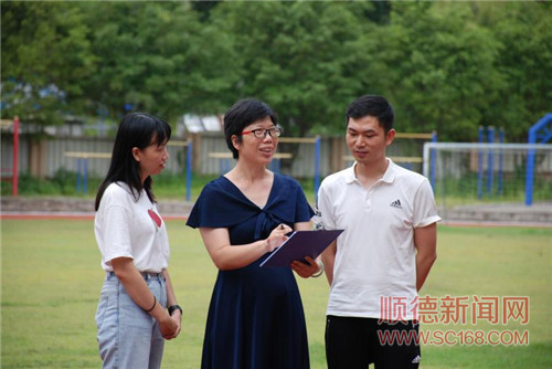 城區(qū)中心小學(xué)校長謝景霞(中)