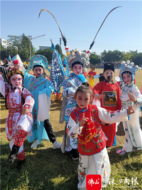 11月12日,順德區鳳城實驗學校體藝節上,小學部的粵劇方陣和家長義工方陣最為亮眼。孩子們畫著精致的粵劇妝容,穿戴著講究的服飾,吸引了雷鳴般的掌聲和觀眾們的陣陣歡呼。據悉,該校開展“曲藝進校園”已經11年了,取得了一系列豐碩的成果。