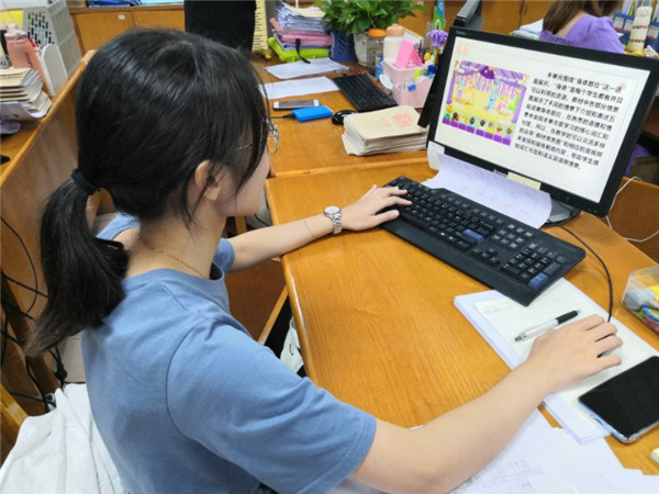 六年級(jí)部分,仕版奮揚(yáng)聶慧珊老師與培教小學(xué)吳燕玲老師對(duì)備課內(nèi)容進(jìn)行熱烈討論。