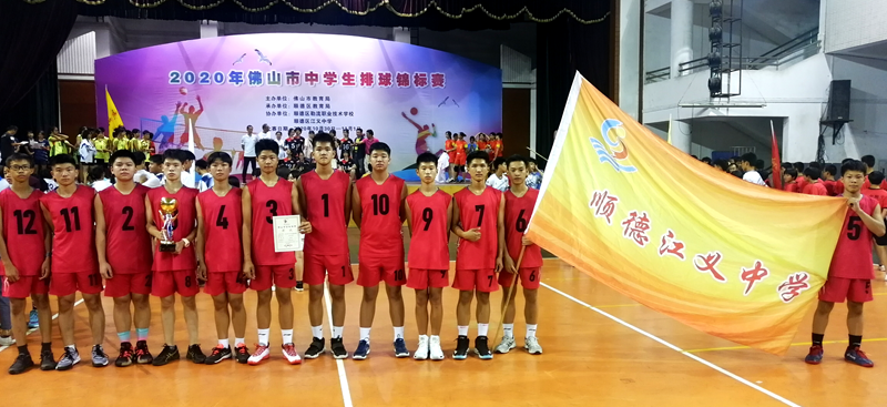 2020年10月30日至11月1日,由佛山市教育局主辦,順德區教育局承辦,順德區勒流江義中學和順德區勒流職業技術學校協辦的2020年佛山市中學生排球錦標賽圓滿落下帷幕,來自全市五區和市直屬學校共21支球隊248名運動員齊聚勒流。江義中學男子排球隊代表順德區初中男子組參賽,經過3天的比賽,憑借主場優勢,再次蟬聯佛山市中學生排球錦標賽初中組冠軍,實現五連冠。梁文爽同學評為最佳運動員,伍劍華老師評為優秀體育指導老師。