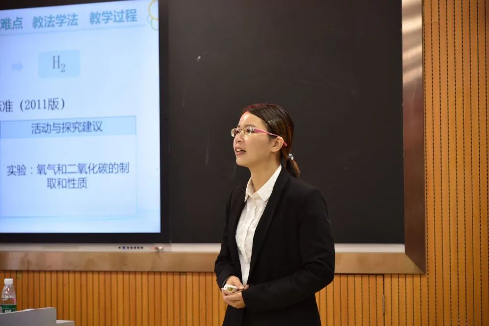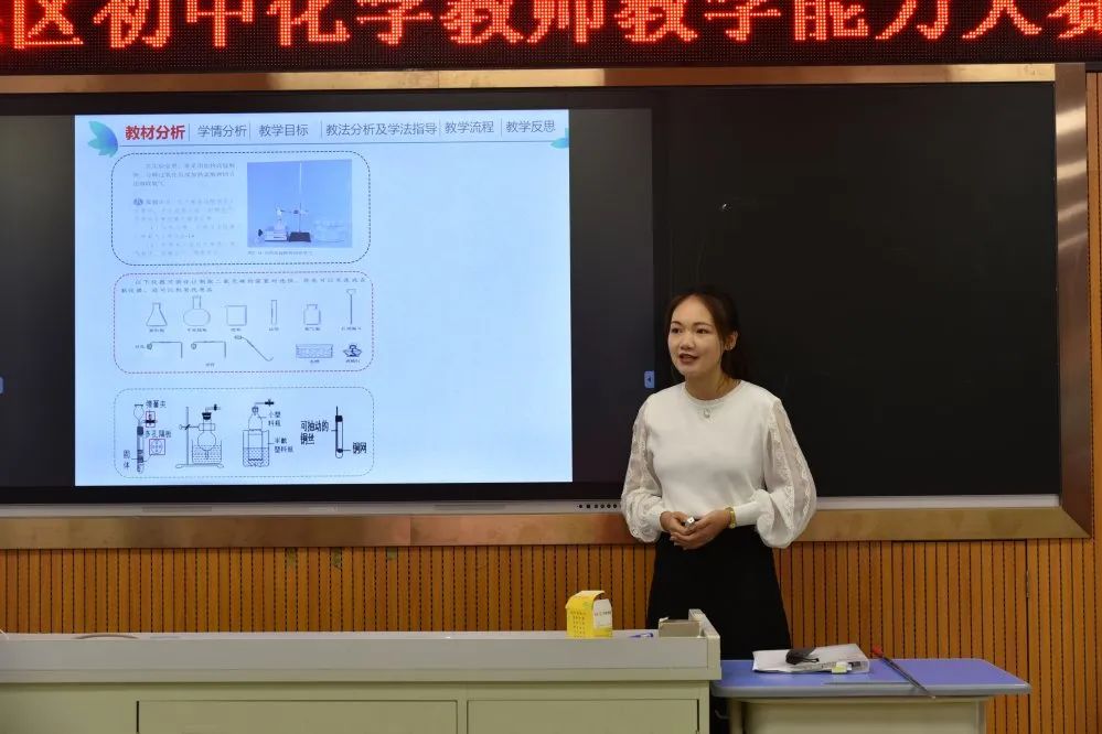 初中化學青年教師教學能力大賽分為兩個環節:15分鐘的說播課和現場提問。選手們需現場講述教學設計,并播放提前錄制的實際教學視頻片段,隨后進行教學自評和反思,簡短而精煉地展示其選課的教學思路和實際教學效果。