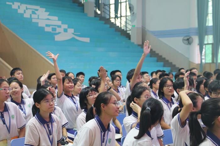 隨后,八年級9班周樂瑤同學作為英語特色班代表發(fā)言。她用流利的英語跟大家分享了自己學習英語經(jīng)歷和方法,感恩育賢提供的英語特色課程讓她的英語學習之路變得多姿多彩,同時她表示英語是接觸世界的一門工具,希望全體同學一起努力學好英語。