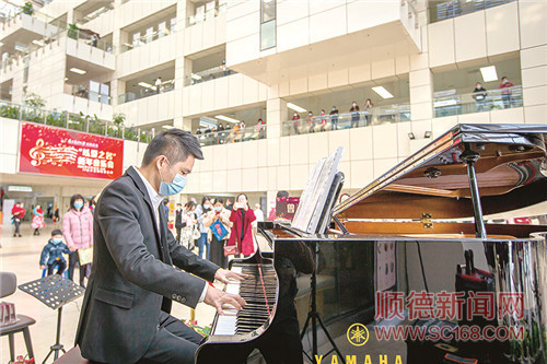 現場,音樂專業老師、南醫大順德醫院醫護人員、德勝幼兒園學生等音樂“發燒友”通過鋼琴演奏、獨唱、合唱等形式,為現場聽眾送上了一場音樂盛宴?!段覑勰阒袊贰蹲詈玫奈磥怼贰吨聬埯惤z》《今宵多珍重》《夜空中最亮的星》多首歌曲的有序“切換”,吸引了不少就診患者駐足欣賞。