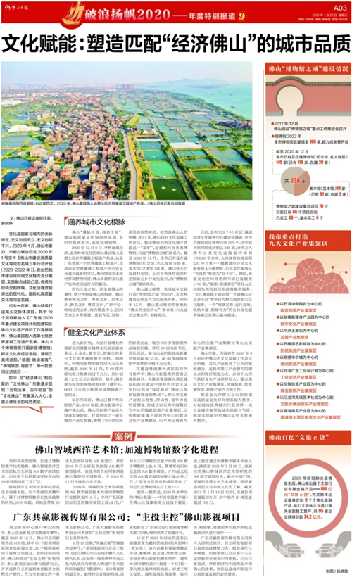過去一年來,佛山持續(xù)打造龍頭文旅體項目,其中10個項目被納入《廣東省2020年重點建設(shè)項目計劃的通知》;佛山文化遺產(chǎn)保護工作喜報頻傳,佛山桑園圍入選第七批世界灌溉工程遺產(chǎn)名錄,佛山5個博物館榮升國家級博物館……如今,與“經(jīng)濟佛山”相匹配的“文化佛山”形象逐步顯現(xiàn)。