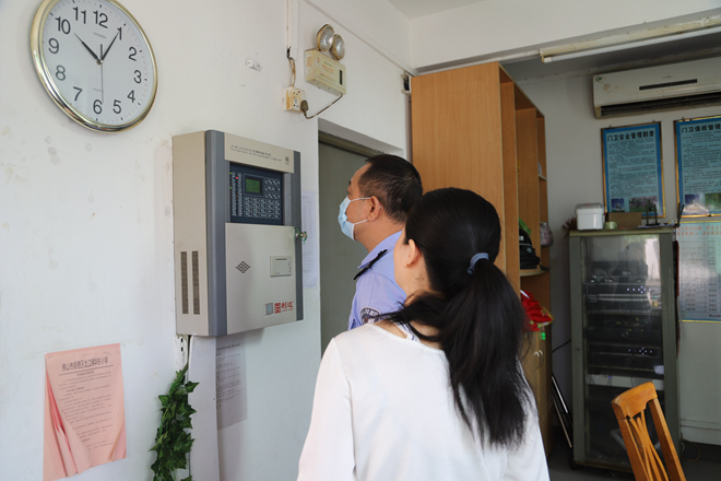 檢查組對學校消防設施進行檢查